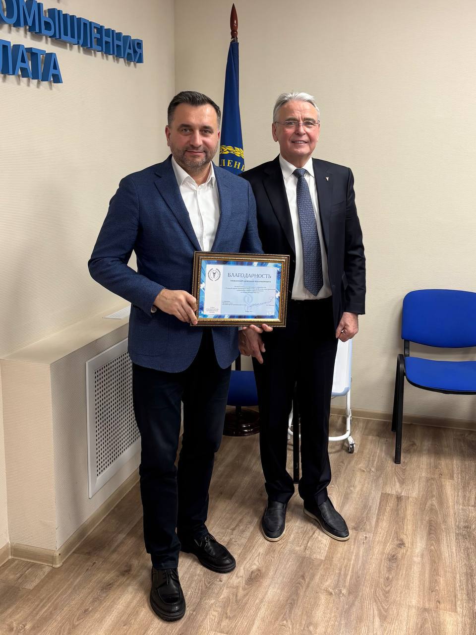 От лица Президента Тульской торгово-промышленной палаты Александр Швыков получил благодарность, за многолетнее и конструктивное сотрудничество с Тульской торгово-промышленной палатой и профессиональное руководство комитетом по промышленному развитию по итогам работы в 2025 году.