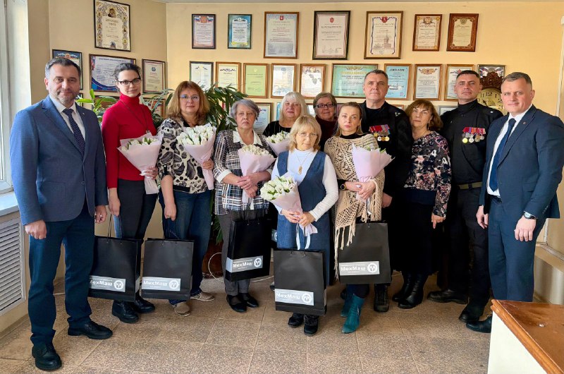 Генеральный директор завода «Мехмаш» Александр Швыков, первый заместитель генерального директора - технический директор Дмитрий Афоничев, полковник спецназа, ветеран боевых действий Геннадий Никитин и участник специальной военной операции, майор СОБР Александр Никитин поздравили коллектив редакции «Молодой коммунар» с Международным женским днём!
